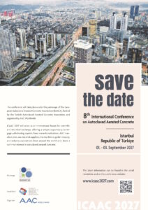 The conference will take place under the patronage of the Euro pean Autoclaved Aerated Concrete Association (EAACA), hosted by the Turkish Autoclaved Aerated Concrete Association,